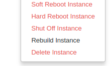 3) Selezionare la drop down list a destra dell'istanza desiderata e cliccare su Rebuild Istance