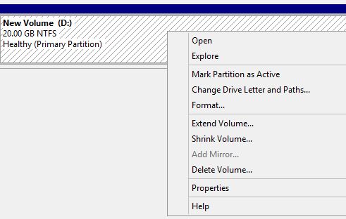 Oppure se espandere la partizione attuale, in questo caso premere con il tasto destro sulla partizione e selezionare Extend Volume....